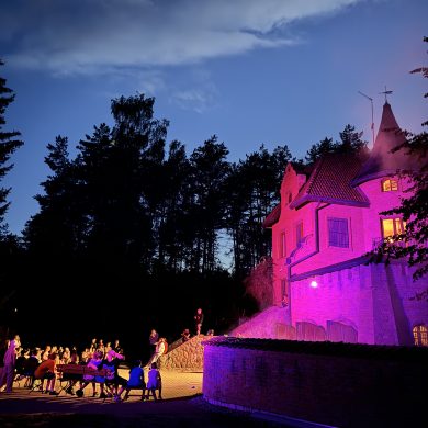 Jednym z najbardziej wyjątkowych wymiarów naszych obozów jest współpraca z aktorami i śpiewakami, z którymi wspólnie aranżujemy serię artystycznych występów. To niezwykłe przedsięwzięcia sceniczne, budowane z dbałością o każdy detal, łączące muzykę, interpretację, ruch i emocję w spójną, poruszającą całość. Dzięki nim uczestnicy stają się częścią wydarzeń, które nie tylko zachwycają formą, ale również pozostawiają trwały ślad w ich wrażliwości i sposobie postrzegania sztuki.